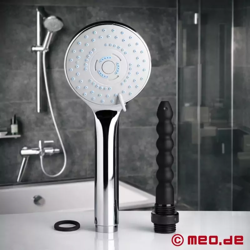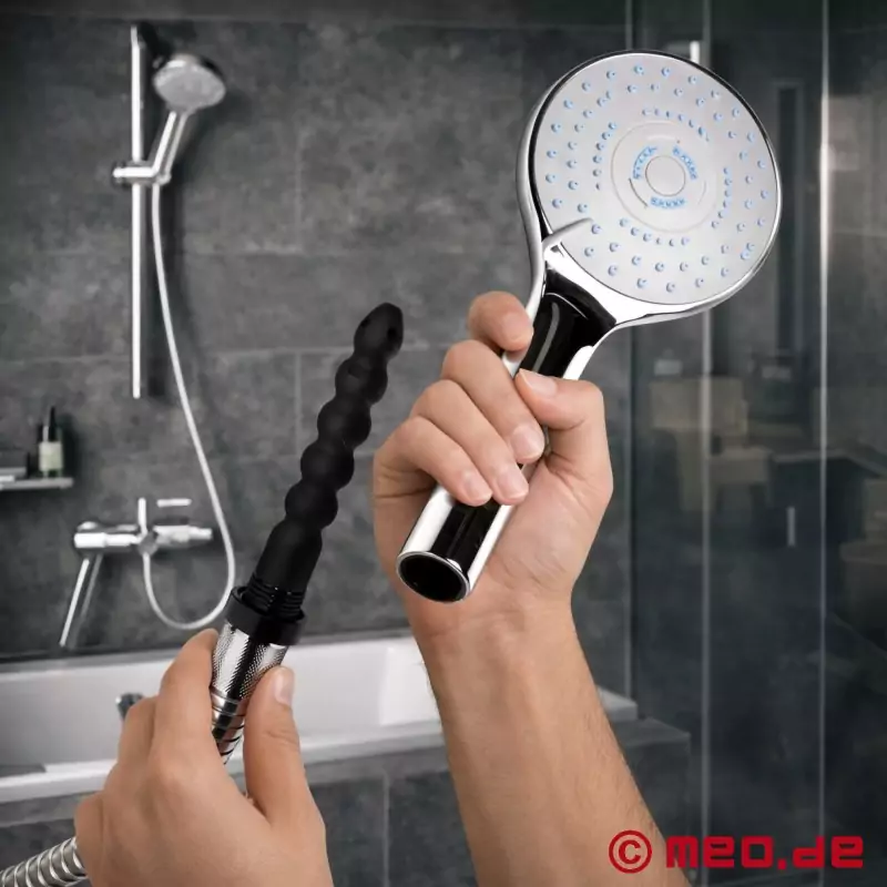 Душ главата е напълно функционална и предлага пет различни настройки на струята за нормална употреба под душа. Ако е необходимо, дискретно вграденият силиконов накрайник с множество отвори едновременно осигурява целенасочено и приятно анално изплакване. Мекият, неплъзгащ се материал улеснява поставянето на аналния душ и позволява удобна употреба.