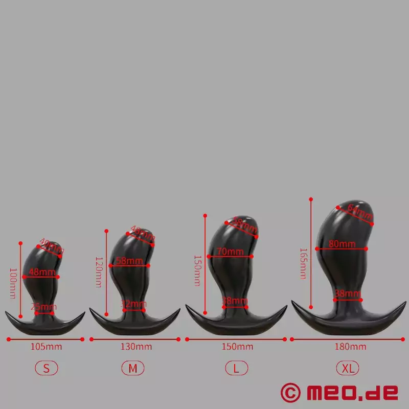 Благодарение на специалната си форма аналната тапицерия упражнява натиск точно там, където аналната стимулация е особено интензивна. Пълнотата и стимулацията се увеличават значително с увеличаване на размера. По-малката версия е идеална за нежно въвеждане, докато средните, големите и XL размери предлагат все по-голям обем и забележимо по-интензивно разтягане. По този начин аналната наслада може да се увеличава стъпка по стъпка.