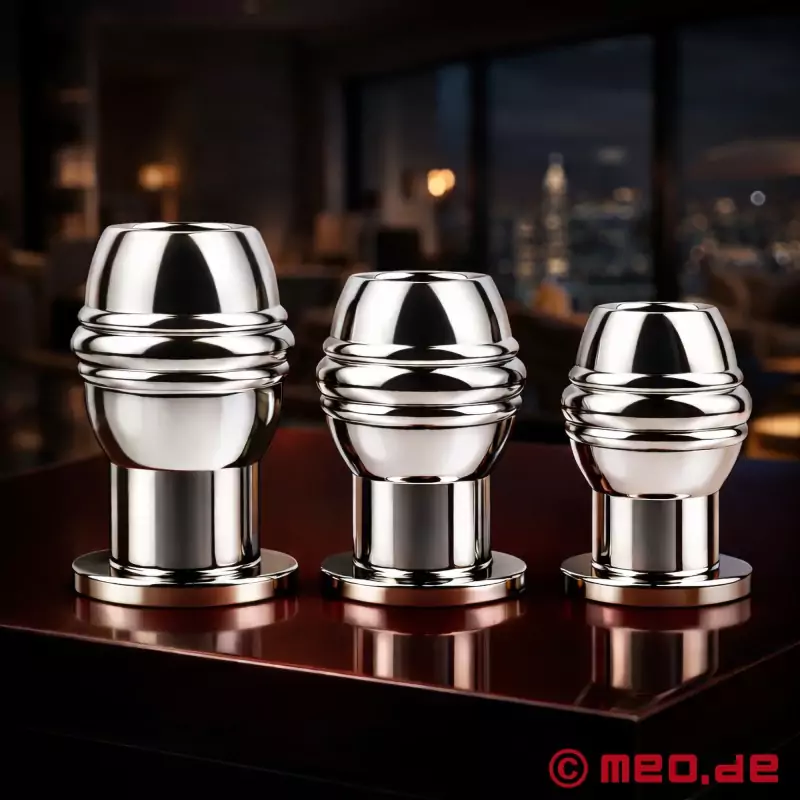 BELLE VUE е Anal Tunnel Plug, който поддържа ануса широко отворен. Особено елегантен butt plug, изработен от полиран алуминий, наличен в 3 размера. Нашата тунелна анална тапа е идеална за отваряне на ануса и за последващо безсрамно анално проникване - например с дълъг, тънък вибратор. Алтернативно, тапата може да се използва и за пълнене на Bottom с течности. BELLE VUE е еднакво подходящ както за мъже, така и за жени. В зависимост от размера, алуминиевият тапицер е идеален както за начинаещи, така и за опитни потребители и професионалисти.