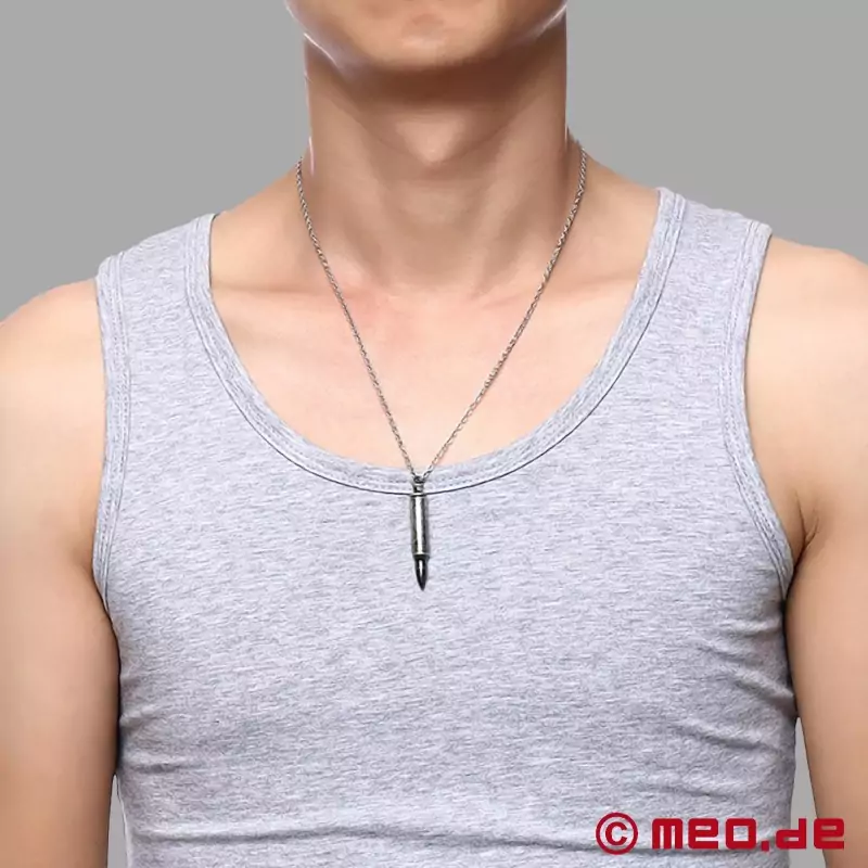 Висулката във формата на патрон гарантирано привлича погледите с мъжествения си вид. Със сигурност ще привличате любопитни и заинтересовани погледи и въпреки това можете да сте сигурни, че никой няма да заподозре тайното отделение.