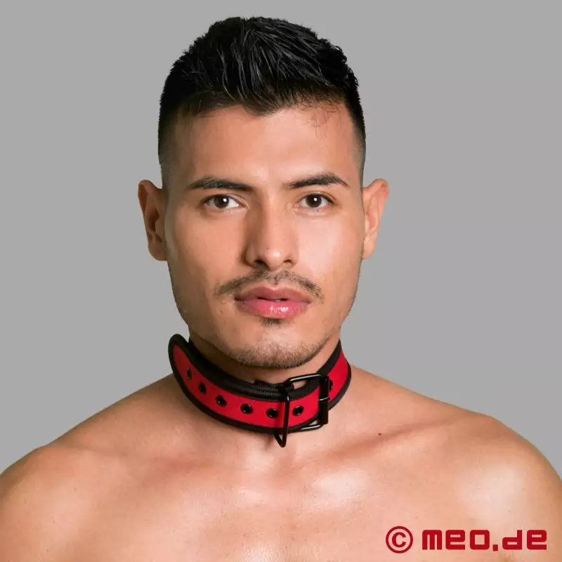 Независимо дали е puppy или роб - тази червено-черна БДСМ яка от MEO Германия, изработена от висококачествен неопрен, е идеалният избор за всеки, който търси здрава, но евтина БДСМ яка.
