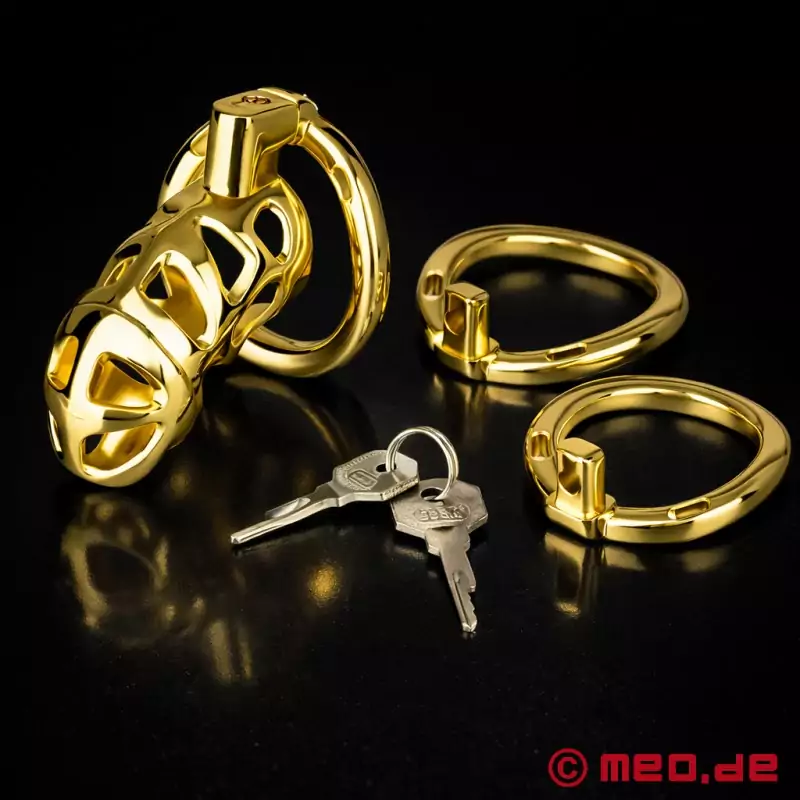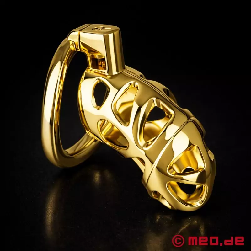 Nopacha AurumLock™ е нещо повече от еротичен аксесоар. Това е луксозна клетка за целомъдрие за мъже, които ценят контрола, господството и естетиката. Тя е изработена от висококачествен позлатен алуминий и съчетава елегантен дизайн с функционална здравина. Макар да изглежда така, сякаш е създаден за милиардери или олигарси, този мъжки колан за целомъдрие е подходящ за всеки, който приема целомъдрието сериозно - независимо дали в контекста на БДСМ, в keyholder или за самодисциплина.