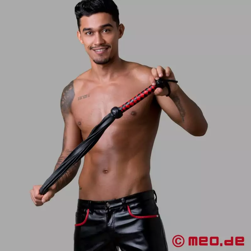 HURTME™ - БДСМ flogger от MEO® - черна/червена кожа