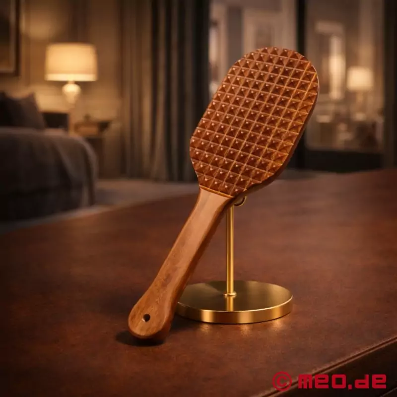 Paddle-то е изключително популярен аксесоар на БДСМ сцената. Може би вече сте запознати с ездачките и камшиците SM, но БДСМ paddle може да осигури особено силно удоволствие и болка. The material is actually the decisive criterion that makes the paddle a tool for severe punishment in the game of dominance and submission. The paddles with a soft pad or two different surfaces for striking are suitable for beginners in the world of spanking. Можете да ги използвате, за да подготвите бавно дупето си за предстоящата болка от удоволствието. Ако обаче леката болка за удоволствие вече не е достатъчна, коженото БДСМ гребло е подходящото за вас. A paddle like this can have different degrees of impact. The paddle, made of rubber or silicone, is also very convincing. Те често са напълно подценявани, защото въпреки че са меки, гъвкави и гладки, предизвикват впечатляващо въздействие върху дупето - дори с много малко усилия. Ако обаче искате интензивна болка от удоволствие, трябва да изберете БДСМ paddle, изработено от дърво. Твърдостта и неподатливостта на материала гарантират изключителна интензивност. MEO ® ви предлага богат избор от paddle с различни форми, дизайн и материали тук, в големия SM онлайн магазин, за да можете да намерите подходящото за вас paddle.