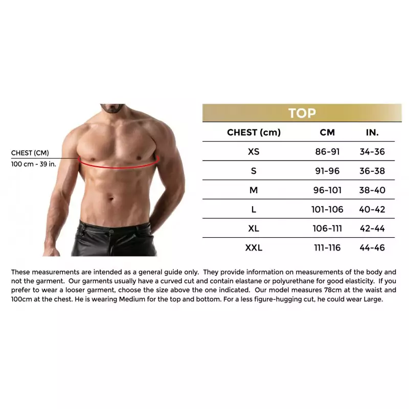 Благодарение на еластичния материал на мъжкия топ свободата на движение и забавлението са гарантирани. Независимо дали става въпрос за секси занимания в парка или на фетиш парти, потникът от TOF Paris е универсален!